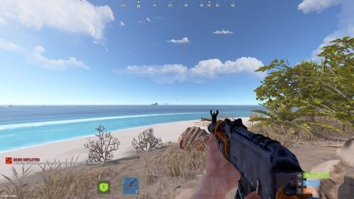 - Deep Sea Events: Treasure Hunt spawns hidden stashes with configurable loot on islands (with optional map markers). Boss Spawn deploys a Bradley APC with boosted health that patrols island shorelines using hand-mapped waypoints for all four island types (Horseshoe, Blob, Round, Line) with full stuck-detection, detour, backtrack, and arc-pathing logic. Supply Drops periodically airdrop crates over random Deep Sea islands. Ghost ship crate hacking is announced to all Deep Sea players.