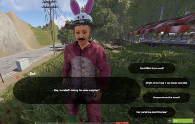 - Depending on your responses to Bob, approach Alice and see how her dialogue changes based on the event states set during your conversation with Bob.