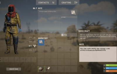 This is a simple plugin. When players type the "/discordlink" chat command, they receive a note item in their inventory with a pre-configured message written in the config file. Players can easily copy the link from there using the Ctrl+C command. Any text or link can be entered, such as a Discord link, Rust Servers vote link, or VIP webstore link. Additionally, the config file allows for setting whether players joining for the first time should receive such a note item upon connecting.