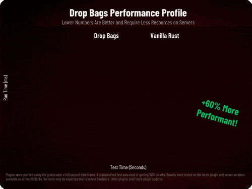 Drop Bags tracks items dropped into the rust world. When there are high-volume drops, they are combined into a single "drop bag.” This method enhances performance by streamlining the handling of item drops and reducing item physics.