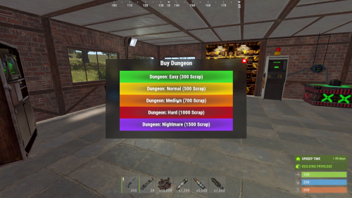 - Buyable Dungeons: Let players invest scrap, Economics currency, or ServerRewards points to unlock their very own private dungeon adventures.