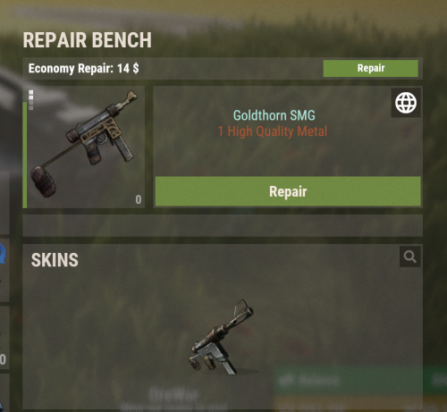 Economy Repair offers a solution that lets players repair their damaged weapons using in-game currency of your choice. With this plugin, your worn-out AKs, tools, and gear can be repaired through a simple new option in the repair bench, making sure you're always prepared for the next battle!