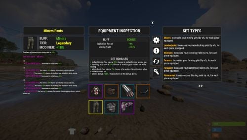 Wearing more than 1 of the same type of item will provide the user with a set bonus. Depending on the set type, they may get access to higher mining yields, more damage to scientists or even access to exclusive loot tables that proc while gathering.
