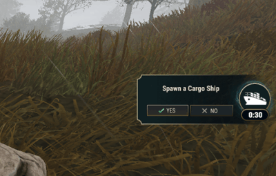 Quote{ "Events": { "cargoship": { "Enabled (true/false)": true, "Name of the event (used to start the event)": "Cargo Ship", "Permission name (empty = no permission needed)": "eventsvoting.cargoship", "Icon url": "https://i.postimg.cc/9M26fLg3/cargoship.png", "Duration (seconds)": 120, "Cooldown (seconds)": 1800, "Require votes %": 70.0, "Cost to use the command (if using a economic plugin)": 0, "Commands to be executed when voting is successful": [] }, "patrolhelicopter": { "Enabled (true/false)": true, "Name of the event (used to start the event)": "Helicopter", "Permission name (empty = no permission needed)": "eventsvoting.patrolhelicopter", "Icon url": "https://i.postimg.cc/Nj3h3s1j/helicopter.png", "Duration (seconds)": 120, "Cooldown (seconds)": 1800, "Require votes %": 70.0, "Cost to use the command (if using a economic plugin)": 0, "Commands to be executed when voting is successful": [] } }, "Chat commands": [ "vote" ], "Admin permission name": "eventsvoting.admin", "UI Options": { "Anchor": "1 0.5 1 0.5", "Offset": "-227 -43 0 43", "Voting UI": { "Background": { "Anchor": "0 .5 0 .5", "Offset": "0 -40 202 40", "BackgroundUrl": "https://i.postimg.cc/0jd045GF/bg.png", "BackgroundColor": null, "Material": null }, "Icon": { "Anchor": "1 .5 1 .5", "Offset": "-50 -16 -18 16", "Background": { "Anchor": "1 .5 1 .5", "Offset": "-83 -43 0 43", "BackgroundUrl": "https://i.postimg.cc/prtBk5jK/circle-bg.png", "BackgroundColor": null, "Material": null } }, "Description settings": { "Anchor": "0 .5 0 .5", "Offset": "15 -3 153 39", "Color": "#e0d8c5", "Size": 12 }, "Countdown settings": { "Anchor": "1 .5 1 .5", "Offset": "-44 -38 -20 -14", "Color": "#ffffff", "Size": 11 }, "Button: yes": { "Text": { "Anchor": ".5 0 .5 1", "Offset": "-4 0 33 0", "Size": 10, "Color": "#e0d8c5", "IconSize": 10.0, "IconUrl": "https://i.postimg.cc/YSQck53f/checkmark.png" }, "Anchor": "0 0 0 0", "Offset": "15 12 81 32", "BackgroundUrl": "https://i.postimg.cc/Pq9ypRr3/button-bg-highlighted.png", "BackgroundColor": null, "Material": null }, "Button: no": { "Text": { "Anchor": ".5 0 .5 1", "Offset": "0 0 33 0", "Size": 10, "Color": "#e0d8c5", "IconSize": 10.0, "IconUrl": "https://i.postimg.cc/4d1rHpjY/x.png" }, "Anchor": "0 0 0 0", "Offset": "87 12 153 32", "BackgroundUrl": "https://i.postimg.cc/VNd4N810/button-bg-normal.png", "BackgroundColor": null, "Material": null } }, "After vote UI": { "Background": { "Anchor": "1 .5 1 .5", "Offset": "-146 -22 -30 22", "BackgroundUrl": "https://i.postimg.cc/05mWmPSp/av-bg.png", "BackgroundColor": null, "Material": null }, "Icon": { "Anchor": "1 .5 1 .5", "Offset": "-50 -16 -18 16", "Background": { "Anchor": "1 .5 1 .5", "Offset": "-83 -43 0 43", "BackgroundUrl": "https://i.postimg.cc/prtBk5jK/circle-bg.png", "BackgroundColor": null, "Material": null } }, "Countdown settings": { "Anchor": "1 .5 1 .5", "Offset": "-44 -38 -20 -14", "Color": "#ffffff", "Size": 11 }, "Yes votes indicator": { "Anchor": "1 .5 1 .5", "Offset": "-130 -12 -100 12", "IconUrl": "https://i.postimg.cc/GhSnjJtY/av-checkmark.png", "IconSize": 24.0, "TextSize": 13, "TextColor": "#e0d8c5" }, "No votes indicator": { "Anchor": "1 .5 1 .5", "Offset": "-94 -12 -64 12", "IconUrl": "https://i.postimg.cc/T3LMNL5s/av-x.png", "IconSize": 24.0, "TextSize": 13, "TextColor": "#e0d8c5" } } } }