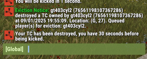 When a Tool Cupboard is destroyed, this plugin notifies admins immediately and enforces eviction by kicking all authorized players.