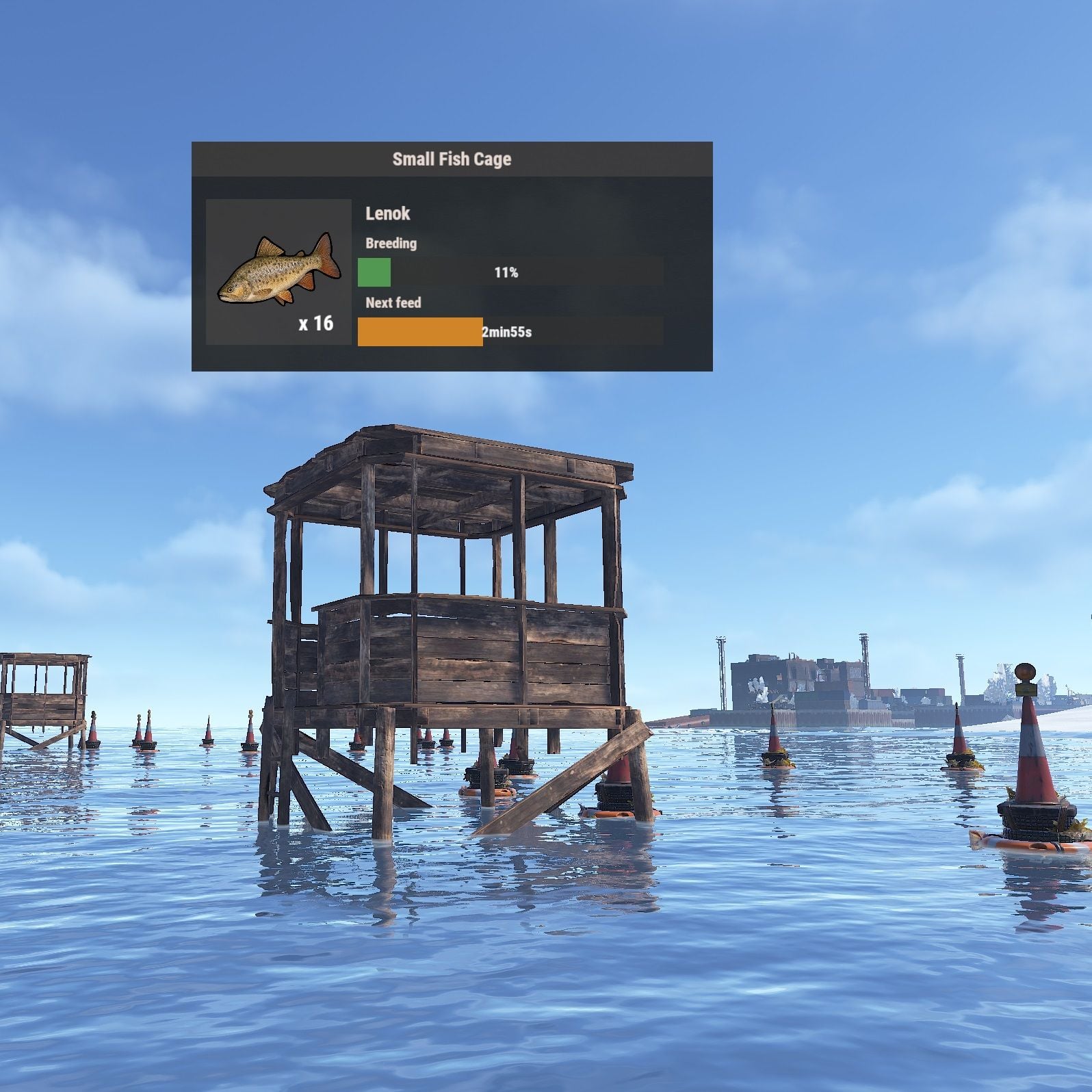• Deployable custom fish cages (Large Fish Cage, Small Fish Cage) that breed