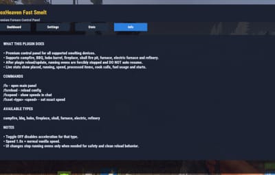 With this plugin, your furnaces will work much faster and more efficiently. Forget about long hours of smelting resources — now you can get metal, sulfur and other materials much faster, saving time and accelerating your progress.