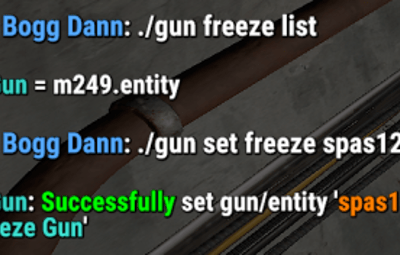 Allow players to use certain guns to spawn animals, explosions, or entities wherever their bullet lands. Or maybe freezing entities is up your alley! If you've ever wanted to do the mannequin challenge with NPCs/Entities in Rust, now you can! You freeze almost every entity in the game using a specified, configurable gun. Not interested in freezing entities? How about deleting them from existence because they are bothering you, well, lucky for you this plugin has that too! Anywhere you shoot will have any of the above abilities if you activate them!