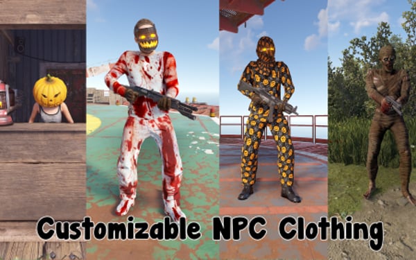 Get your server ready for Halloween! This plugin adds several options to make your server more spooky, including jumpscares when looting a crate, customizable NPC clothing and graveyards with zombies that spawn at night.