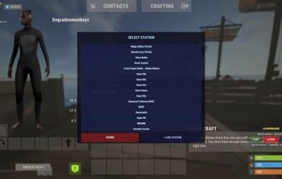 Full station picker UI with all server stations listed