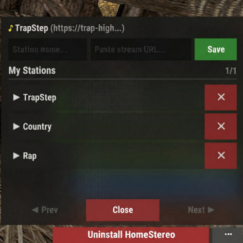 The core feature of HomeStereo is the custom station manager. When a player looks at the prefab of with an installed stereo, they can open a dedicated UI dashboard to add, edit, delete, and play internet radio streams.