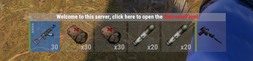 { "Enable Info Bar (true/false)": true, "Position(ABOVE_INVENTORY/BELOW_INVENTORY)": "BELOW_INVENTORY", "Information displayed in a loop": [ { "Text": "Welcome to this server, click here to open the <color=#ED1C24>WelcomePanel</color>", "CommandOnClick": "chat.say /info", "ShowSeconds": 30 }, { "Text": "Please don't cheat, the account will be <color=#ED1C24>banned</color>, the loss outweighs the gain.", "CommandOnClick": "chat.say /info", "ShowSeconds": 30 }, { "Text": "Discord: discord.gg/playrust, Join discord to recceive the <color=#ED1C24>gift pack</color>.", "CommandOnClick": "chat.say /info", "ShowSeconds": 30 } ] }