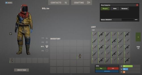 { "Economic Settings": { "Use Economics": false, "Use Server Rewards": false, "Use Item Economy": true, "Item Name (For display)": "Scrap", "Item ID": -932201673, "Item Skin": 0 }, "Prevention Settings": { "Prevent shop when building blocked": true }, "NoEscape Settings": { "Use No Escape": true, "Block when Combat Blocked": true, "Block when Raid Blocked": true }, "Chat Settings": { "Message Prefix": "<color=#FFD700>[Inventory Shop]</color>", "Message Icon (Steam ID)": 76561198194158447, "Shop CMD Abbrivations": [ "s", "rewards" ] }, "Sound Effects": { "Purchase Sound Effect": "assets/prefabs/deployable/vendingmachine/effects/vending-machine-purchase-human.prefab", "Sell Sound Effect": "assets/prefabs/deployable/vendingmachine/effects/vending-machine-purchase-human.prefab", "Save Inventory Effect": "assets/prefabs/deployable/locker/sound/equip_zipper.prefab", "Not Enough Money Effect": "assets/prefabs/locks/keypad/effects/lock.code.denied.prefab", "Button Press Effect": "assets/bundled/prefabs/fx/notice/stack.world.fx.prefab" }, "Permission Settings": { "Require permission for Shop": true, "Shop permission": "inventoryshop.useshop" }, "Additional Settings": { "Allow shop open using shift + middle mouse": true, "Log players buy/sell transactions to console": true }, "Shop Categories": { "Weapons": [ { "Item ID": 1545779598, "Item Display Name (Leave blank for default)": "", "Item Buy Price (for 1)": 5000, "Item Sell Price (for 1)": 3000, "Item Skin": 0, "Item Amount In Store": 1, "Item Permission": "", "Item Command": "", "Condition Of Item": 150.0, "Weapon Attributes": { "Ammo Item ID": -1211166256, "Amount in Magazine": 30 } }, { "Item ID": -1812555177, "Item Display Name (Leave blank for default)": "", "Item Buy Price (for 1)": 3000, "Item Sell Price (for 1)": 1500, "Item Skin": 0, "Item Amount In Store": 1, "Item Permission": "", "Item Command": "", "Condition Of Item": 150.0, "Weapon Attributes": { "Ammo Item ID": -1211166256, "Amount in Magazine": 30 } }, { "Item ID": 28201841, "Item Display Name (Leave blank for default)": "", "Item Buy Price (for 1)": 3250, "Item Sell Price (for 1)": 2000, "Item Skin": 0, "Item Amount In Store": 1, "Item Permission": "", "Item Command": "", "Condition Of Item": 150.0, "Weapon Attributes": { "Ammo Item ID": -1211166256, "Amount in Magazine": 30 } } ], "Attire": [ { "Item ID": 1266491000, "Item Display Name (Leave blank for default)": "", "Item Buy Price (for 1)": 550, "Item Sell Price (for 1)": -1, "Item Skin": 0, "Item Amount In Store": 1, "Item Permission": "", "Item Command": "", "Condition Of Item": 200.0, "Weapon Attributes": { "Ammo Item ID": -1, "Amount in Magazine": -1 } }, { "Item ID": -470439097, "Item Display Name (Leave blank for default)": "", "Item Buy Price (for 1)": 600, "Item Sell Price (for 1)": -1, "Item Skin": 0, "Item Amount In Store": 1, "Item Permission": "", "Item Command": "", "Condition Of Item": 200.0, "Weapon Attributes": { "Ammo Item ID": -1, "Amount in Magazine": -1 } }, { "Item ID": 491263800, "Item Display Name (Leave blank for default)": "", "Item Buy Price (for 1)": 600, "Item Sell Price (for 1)": -1, "Item Skin": 0, "Item Amount In Store": 1, "Item Permission": "", "Item Command": "", "Condition Of Item": 200.0, "Weapon Attributes": { "Ammo Item ID": -1, "Amount in Magazine": -1 } } ], "Resources": [ { "Item ID": -151838493, "Item Display Name (Leave blank for default)": "", "Item Buy Price (for 1)": 10, "Item Sell Price (for 1)": -1, "Item Skin": 0, "Item Amount In Store": 1000, "Item Permission": "", "Item Command": "", "Condition Of Item": 0.0, "Weapon Attributes": { "Ammo Item ID": -1, "Amount in Magazine": -1 } }, { "Item ID": -2099697608, "Item Display Name (Leave blank for default)": "", "Item Buy Price (for 1)": 50, "Item Sell Price (for 1)": -1, "Item Skin": 0, "Item Amount In Store": 10000, "Item Permission": "", "Item Command": "", "Condition Of Item": 0.0, "Weapon Attributes": { "Ammo Item ID": -1, "Amount in Magazine": -1 } }, { "Item ID": -1581843485, "Item Display Name (Leave blank for default)": "", "Item Buy Price (for 1)": 100, "Item Sell Price (for 1)": -1, "Item Skin": 0, "Item Amount In Store": 1000, "Item Permission": "", "Item Command": "", "Condition Of Item": 0.0, "Weapon Attributes": { "Ammo Item ID": -1, "Amount in Magazine": -1 } } ] } }