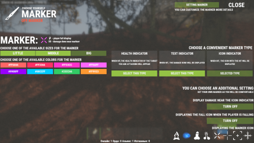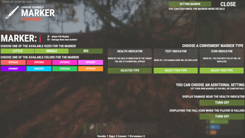 Absolutely every marker in the player is configured separately, when you change the marker type, the settings of the previous marker are saved, which gives more comfort to your players in choosing and configuring the marker for themselves!