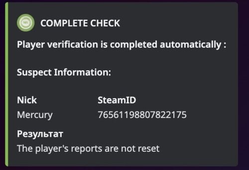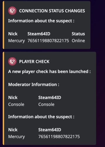 - Notify players that a moderator has completed checking a player and made a verdict (banned) (configurable in the language file)