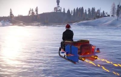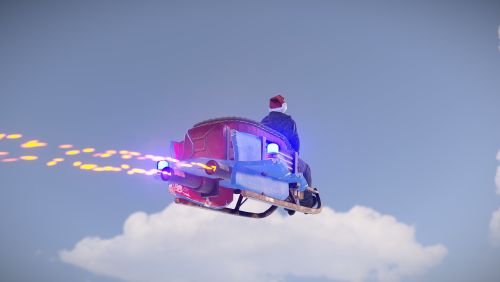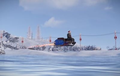 Now, you can race across the snowy landscapes and through the clouds on a sleigh equipped with a powerful jet engine!