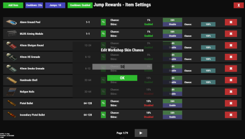 - Item pools with settings for probability, skins, and quantity