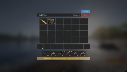 A comprehensive kit management system for Rust that allows server administrators to create, manage, and distribute item kits to players with a user-friendly UI.