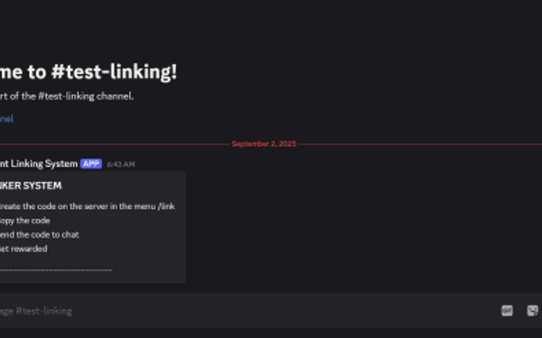 - Generate Code - Players use the /link command to open the UI interface, or /link code for direct command-only code generation with built-in cooldown protection.
