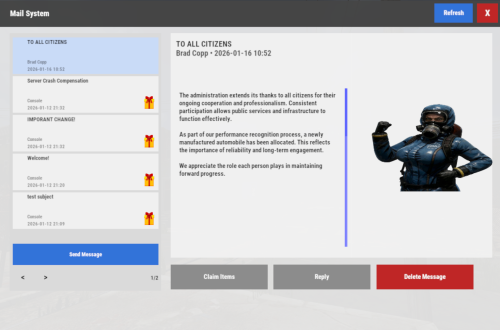 If you’re looking for a modern replacement for chat spam, manual kit commands, or unreliable reward delivery, Mail System provides a polished, user-friendly solution that players will instantly understand and appreciate.