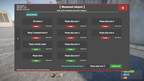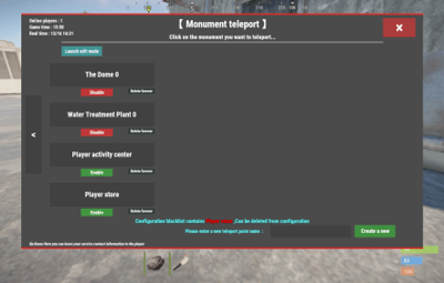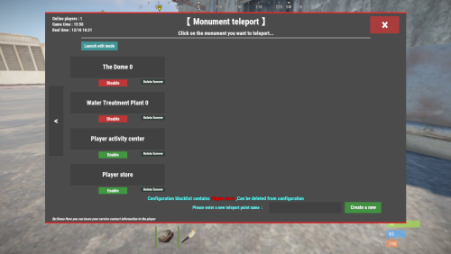 - Monument teleport edit Permission : mapteleport.monumentedit (The edit mode button is displayed when the Monument teleport UI is opened)
