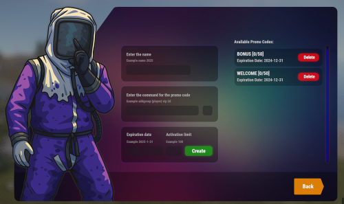It gives administrators full control over unique promo codes, rewards, activation limits, and expiration dates — all through a beautiful, user-friendly interface.