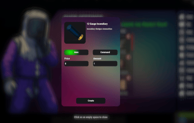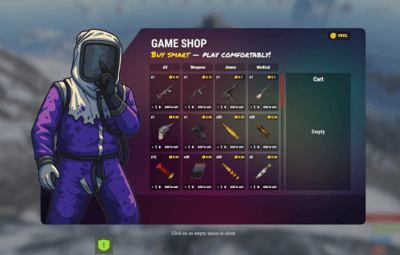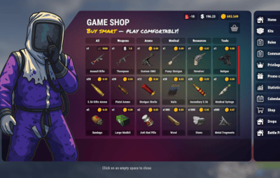 { "NPC Image URL": "https://i.ibb.co/r2Ft9sJQ/MBNPC.png", "Virtual currency image URL": "https://i.ibb.co/gbMSk6DV/Virtual.png", "Donate currency image URL": "https://i.ibb.co/KzzPd1cX/MBShop-Coin.png", "Scrap currency image URL": "https://ru-wiki.rustclash.com/img/items180/scrap.png", "Scrollbar Handle Color": "1 0 0 0.6", "Configuration of Categories and Items": { "Weapons": { "Translations": { "en": { "Enabled": true, "Text": "Weapons" }, "uk": { "Enabled": false, "Text": "Зброя" }, "ru": { "Enabled": false, "Text": "Оружие" } }, "Items": [ { "Name": "Assault Rifle", "Shortname": "rifle.ak", "Amount": 1, "Price": 10000.0, "Description": "High damage machine rifle.", "Currency (Donate, Virtual, Scrap)": 3 }, { "Name": "Thompson", "Shortname": "smg.thompson", "Amount": 1, "Price": 2.0, "Description": "A medium damage machine gun.", "Currency (Donate, Virtual, Scrap)": 2 }, { "Name": "Custom SMG", "Shortname": "smg.2", "Amount": 1, "Price": 0.1, "Description": "A rapid-firing Machine Gun. Sacrifices accuracy and distance for speed.", "Currency (Donate, Virtual, Scrap)": 1 }, { "Name": "Pump Shotgun", "Shortname": "shotgun.pump", "Amount": 1, "Price": 0.1, "Description": "A Shotgun. Fires 8 rounds.", "Currency (Donate, Virtual, Scrap)": 1 }, { "Name": "Revolver", "Shortname": "pistol.revolver", "Amount": 1, "Price": 0.08, "Description": "A standard eight shot revolver.", "Currency (Donate, Virtual, Scrap)": 1 }, { "Name": "Nailgun", "Shortname": "pistol.nailgun", "Amount": 1, "Price": 0.06, "Description": "A construction tool turned deadly.", "Currency (Donate, Virtual, Scrap)": 1 } ] }, "Ammo": { "Translations": { "en": { "Enabled": true, "Text": "Ammo" }, "uk": { "Enabled": false, "Text": "Боєприпаси" }, "ru": { "Enabled": false, "Text": "Патроны" } }, "Items": [ { "Name": "5.56 Rifle Ammo", "Shortname": "ammo.rifle", "Amount": 30, "Price": 0.05, "Description": "Ammunition for a Rifle. Loses velocity when fired over long distances resulting in slightly decreased damage.", "Currency (Donate, Virtual, Scrap)": 1 }, { "Name": "Pistol Ammo", "Shortname": "ammo.pistol", "Amount": 30, "Price": 0.04, "Description": "Ammunition for a Pistol. Loses velocity when fired over long distances resulting in slightly decreased damage.", "Currency (Donate, Virtual, Scrap)": 1 }, { "Name": "Shotgun Shells", "Shortname": "ammo.shotgun", "Amount": 12, "Price": 0.04, "Description": "Ammunition for a Shotgun.", "Currency (Donate, Virtual, Scrap)": 1 }, { "Name": "Nails", "Shortname": "ammo.nailgun.nails", "Amount": 30, "Price": 0.03, "Description": "Standard nailgun ammunition", "Currency (Donate, Virtual, Scrap)": 1 }, { "Name": "Incendiary 5.56", "Shortname": "ammo.rifle.incendiary", "Amount": 20, "Price": 0.06, "Description": "Slower moving ammunition that deals fire damage. There's a small chance it will start a fire.", "Currency (Donate, Virtual, Scrap)": 1 } ] }, "Medical": { "Translations": { "en": { "Enabled": true, "Text": "Medical" }, "uk": { "Enabled": false, "Text": "Медицина" }, "ru": { "Enabled": false, "Text": "Медикаменты" } }, "Items": [ { "Name": "Medical Syringe", "Shortname": "syringe.medical", "Amount": 2, "Price": 0.05, "Description": "Heal yourself or others with this syringe. Left-click heals you, right-click heals a target.", "Currency (Donate, Virtual, Scrap)": 1 }, { "Name": "Bandage", "Shortname": "bandage", "Amount": 5, "Price": 0.03, "Description": "Heal yourself or others with this bandage. Left-click heals you, right-click heals a target.", "Currency (Donate, Virtual, Scrap)": 1 }, { "Name": "Large Medkit", "Shortname": "largemedkit", "Amount": 1, "Price": 0.1, "Description": "A large medkit that heals you to max health over time and stops any bleeding instantly.", "Currency (Donate, Virtual, Scrap)": 1 }, { "Name": "Anti-Rad Pills", "Shortname": "antiradpills", "Amount": 2, "Price": 0.03, "Description": "Taking these pills will lower your radiation level. WARNING: May cause extreme dehydration.", "Currency (Donate, Virtual, Scrap)": 1 } ] }, "Resources": { "Translations": { "en": { "Enabled": true, "Text": "Resources" }, "uk": { "Enabled": false, "Text": "Ресурси" }, "ru": { "Enabled": false, "Text": "Ресурсы" } }, "Items": [ { "Name": "Wood", "Shortname": "wood", "Amount": 1000, "Price": 0.05, "Description": "Wood. Collected from trees and used in many crafting recipes. It's also needed to cook in camp-fires.", "Currency (Donate, Virtual, Scrap)": 1 }, { "Name": "Stone", "Shortname": "stones", "Amount": 1000, "Price": 0.05, "Description": "Harvested from rocks using tools, basic building material.", "Currency (Donate, Virtual, Scrap)": 1 }, { "Name": "Metal Fragments", "Shortname": "metal.fragments", "Amount": 500, "Price": 0.08, "Description": "Metal Fragments. Smelted from Metal Ore, used in lots of different crafting recipes.", "Currency (Donate, Virtual, Scrap)": 1 }, { "Name": "Sulfur", "Shortname": "sulfur", "Amount": 500, "Price": 0.1, "Description": "Sulfur is commonly used in gunpowder, medicine, and matches. Matches release sulfur dioxide when they burn, giving them their smell. Sulfur is an essential component to living cells.", "Currency (Donate, Virtual, Scrap)": 1 }, { "Name": "HQ Metal Ore", "Shortname": "hq.metal.ore", "Amount": 50, "Price": 0.15, "Description": "A rock containing High Quality Metal. Can be smelted in a furnace.", "Currency (Donate, Virtual, Scrap)": 1 } ] }, "Tools": { "Translations": { "en": { "Enabled": true, "Text": "Tools" }, "uk": { "Enabled": false, "Text": "Інструменти" }, "ru": { "Enabled": false, "Text": "Инструменты" } }, "Items": [ { "Name": "Hatchet", "Shortname": "hatchet", "Amount": 1, "Price": 0.05, "Description": "A Hatchet, useful for chopping trees and dismembering corpses.", "Currency (Donate, Virtual, Scrap)": 1 }, { "Name": "Pickaxe", "Shortname": "pickaxe", "Amount": 1, "Price": 0.06, "Description": "A Pickaxe, useful for gathering ore fro