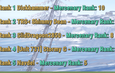 /topmercs - will print to the executor the top 5 merc ranks on the server