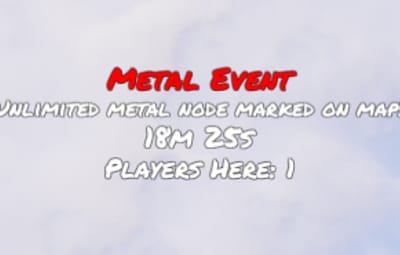 During the Unlimited Metal Event, a large Metal node appears at a set location(s) and is marked on the map, drawing attention to all players. This node provides unlimited Metal, giving players a chance to collect a significant amount of Metal within a limited time. This event can add an extra layer of competition and cooperation among your players as they rush to take advantage of these lucrative opportunities.