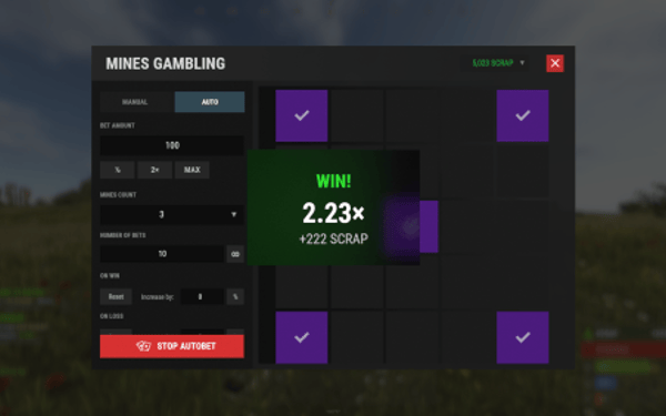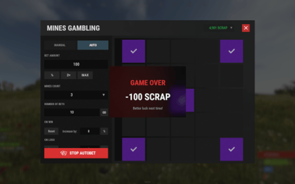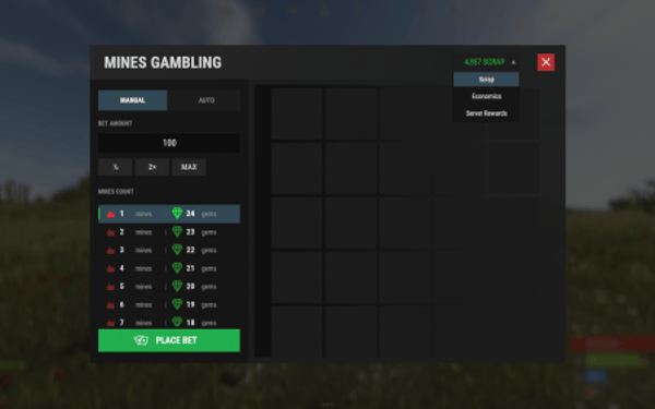Mines is a classic, high-stakes gambling game brought to life in Rust with a sleek, modern, and fully interactive UI. Players bet their chosen currency on a 5x5 grid, aiming to uncover as many gems as possible while avoiding hidden mines. With each gem found, the potential winnings multiply, creating a thrilling risk-versus-reward experience. Cash out at any time to secure your profits, or push your luck for a chance at massive payouts!