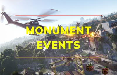 QuoteIs Any MonumentEvent Running check: bool IsMonumentEventsRunning(string MonumentID) EventStart: OnMEStarted OnMeRadtownStarts OnMeOxumsGasStationStarts OnMeAbandonedSupermarketStarts OnMeWaterTreatmentPlantStarts OnMePowerPlantStarts OnMeFerryTerminalStarts OnMeHarborStarts OnMeJunkyardStarts OnMeTheDomeStarts OnMeTrainYardStarts OnMeSatelliteDishStarts OnMeSewerBranchStarts OnMeLaunchSiteStarts EventStop: OnMEStop OnMeRadtownStops OnMeOxumsGasStationStops OnMeAbandonedSupermarketStops OnMeWaterTreatmentPlantStops OnMePowerPlantStops OnMeFerryTerminalStops OnMeHarborStops OnMeJunkyardStops OnMeTheDomeStops OnMeTrainYardStops OnMeSatelliteDishStops OnMeSewerBranchStops OnMeLaunchSiteStops
