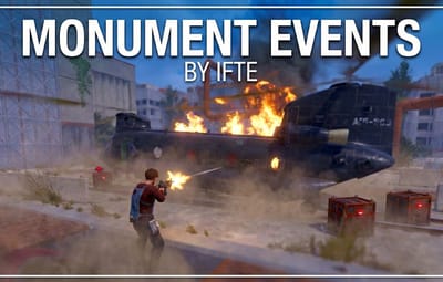 The Monument Events plugin creates amazing events on the monument from preconfigured presets from config. It creates CustomNPCs around the monument which will roam the monument during the event. Then it will spawn CH47 Helicopter which will drop Hackable crates & spawn configured Patrol Helicopters which will roam the monument vicinity. When players try to unlock the Hackable Crate there will be a CH47 Helicopter which will carry NPC and drop on the monument and will give players an amazing raged experience.