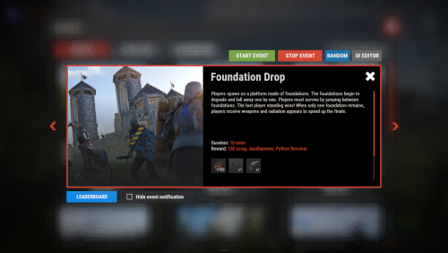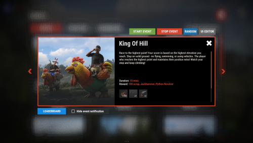 - In-game visual editor for creating and customizing event interfaces, allowing for real-time adjustments without coding.