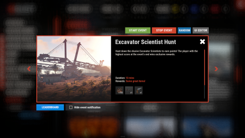 - NPC Excavator - Kill the most Excavator scientists. Specialized combat at the dangerous Excavator monument.