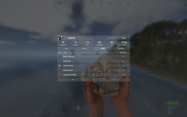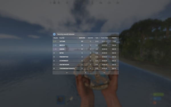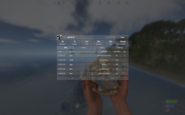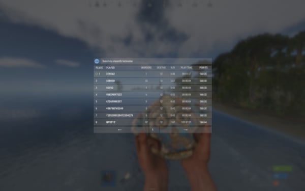 QuoteList<ulong> API_GetTop(int categoryID); // Returns a list of player IDs sorted by the specified statistic category. PlayerData API_GetStatistics(ulong userID); // Returns full statistics data for the specified player. int API_GetPlaceByID(ulong userID, int categoryID); // Returns the player's position in the leaderboard for the specified category. // (0 = first place, -1 if not found) class PlayerData { public Statistics main = new Statistics(); public List<Record> kills = new List<Record>(64); public List<Record> deaths = new List<Record>(64); } class Statistics { public bool isPublic = true; public Kills kills = new Kills(); public class Kills { public int players; public Dictionary<string, int> animals = new Dictionary<string, int>(); public Dictionary<string, int> npcs = new Dictionary<string, int>(); public int total => players + animals.Values.Sum() + npcs.Values.Sum(); } public Deaths deaths = new Deaths(); public class Deaths { public int players; public int suicide; public Dictionary<string, int> animals = new Dictionary<string, int>(); public Dictionary<string, int> npcs = new Dictionary<string, int>(); public int total => players + suicide + animals.Values.Sum() + npcs.Values.Sum(); } public Combat combat = new Combat(); public class Combat { public int hits; public int shots; public int headShots; } public double playTime; public float points; public Dictionary<string, int> crafted = new Dictionary<string, int>(); public Dictionary<string, int> gathered = new Dictionary<string, int>(); public float accuracy => combat.shots == 0 ? 0f : ((float)combat.hits / combat.shots) * 100f; public float hs => combat.hits == 0 ? 0f : (float)combat.headShots / combat.hits * 100f; } class Record { public string target; public string weapon; public float distance; public bool hs; public DateTime time; }