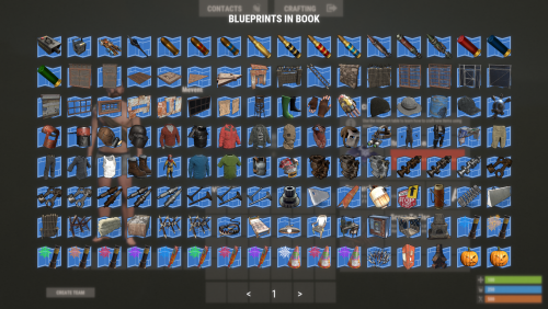 A player puts all his blueprints in a book and then he can gift that book to another one who can unlock all of the blueprints the player had