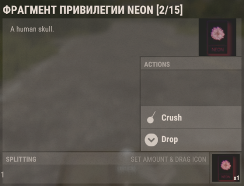 For correct operation, set the max. number of stacks of human skull, according to the number of sets for crafting