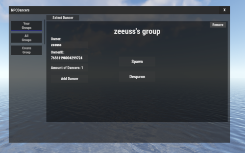 /npcd dancer add -- Adds new dancer with your current position and rotation to the group