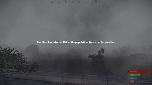 After the explosion and initial chaos, players receive a message about the ongoing zombie threat.