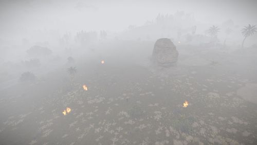 Post-explosion, a fog effect is applied to simulate nuclear fallout. This fog gradually clears over time.