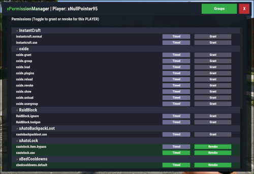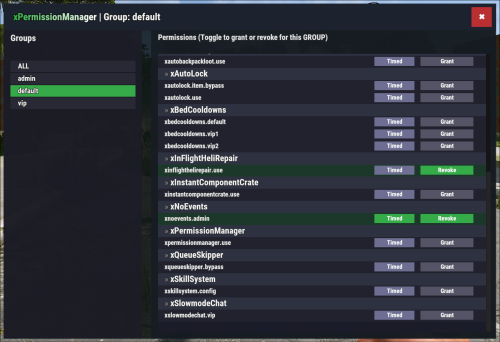 /xpmuser <name or steamID> [Opens the UI for managing a specific player’s permissions/groups] PERMISSION OR ADMIN REQUIRED
