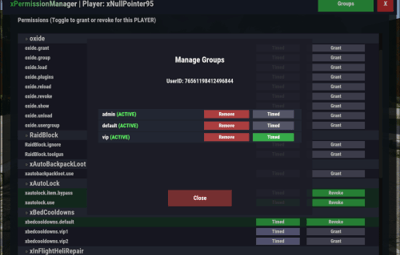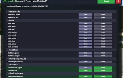 /xpmuser <name or steamID> [Opens the UI for managing a specific player’s permissions/groups] PERMISSION OR ADMIN REQUIRED