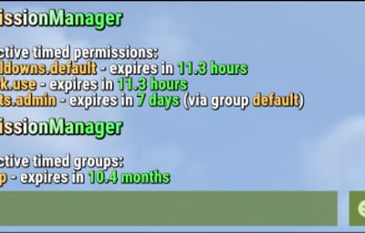 /xpmtimed [Shows all active timed permissions for a player. Includes remaining duration and whether they came from a group]
