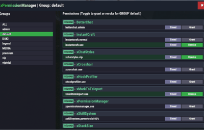 - Grant or revoke any permission from groups or individual players.