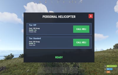 Give your players the power to summon their own personal patrol helicopter! This plugin lets players call in a customizable helicopter with tiered permissions, configurable costs (Scrap, Economics, ServerRewards), and advanced privacy controls (Owner, Team, Friends, Clan, PVE, Public).