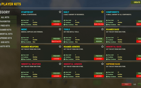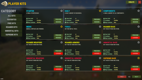 PLAYERKITS allows your players to redeem pre-made kits of items from a UI. Very easy to use and has most of the latest features for containing all your server free and paid kits.