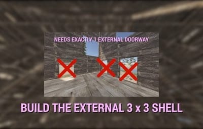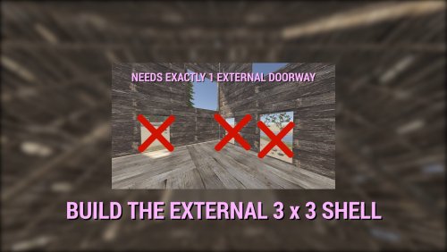 Not every building is viable to be converted. Generally speaking, a 3 x 3 x 3 cube with exactly 1 external single doorway anywhere on the side must be constructed - and nothing else on the outside (apart from the potential exception for Solar Panels / Wind Turbines on the roof, if your config allows them). The building blocks can be of any tier or a mix of tiers - from Twig to Armoured. It doesn't matter what's inside of the cube, only the outer "shell" matters. Once converted into a Pocket Dimension, players can build/expand/demolish inside just like they would with regular bases.