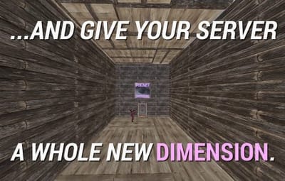 Make sure you maintain the integrity of your Pocket Dimension! If any of the external structures (wall/doorway) of the Pocket Dimension building either 1) decays 2) is raided 3) is removed by an admin/plugin, or 4) the box housing the dimension itself gets destroyed, the Dimension will Collapse, teleporting all players inside of it, and dropping all contents of storage containers, turrets, the Tool Cupboard, and anything else that can store any items, to the location where the box is/was last deployed. Easy come, easy go!