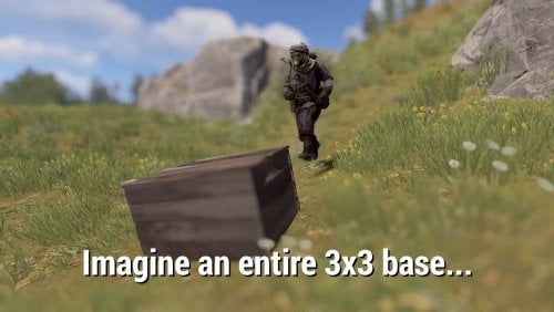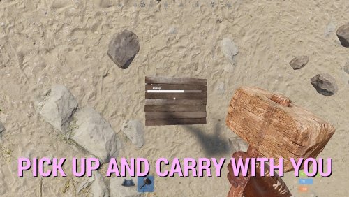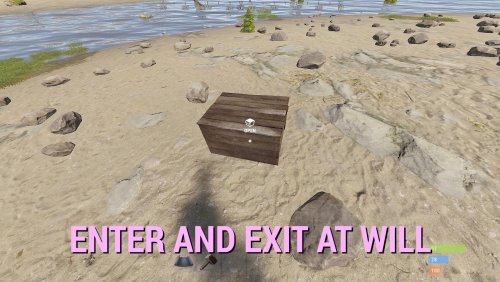 Introducing portable 3 x 3 bases in a box - that you can carry in your inventory! Deploy them and open them to go inside - to store, craft, smelt, grow, party... live. Expand and maintain the upkeep to protect from raiders. Pick them up and deploy somewhere else. Think outside of the box... and inside too!