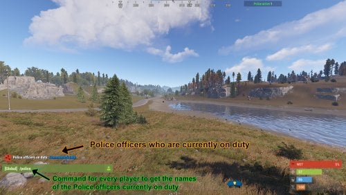 /police - available for every player on the server. Give you information (names) about all police officers currently on duty.
